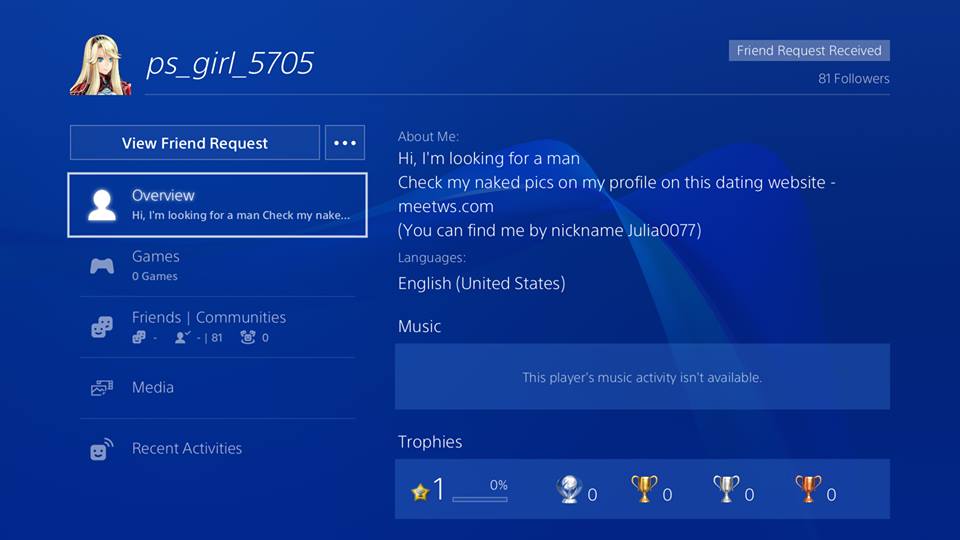 Gerard Campbell On Twitter Got A Random Psn Friend Request Promptly Blocked Of Course But How Does This Sort Of Thing Manage To Happen - It is a domain having com extension.