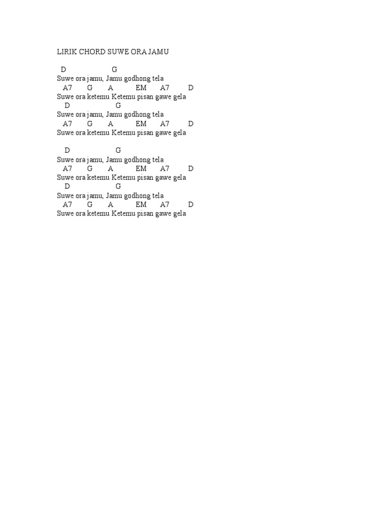 Suwe Ora Jamu Lirik / A suwe ora jamu d jamu godong telo e suwe ora ketemu d a ketemu pisan gawe gelo.